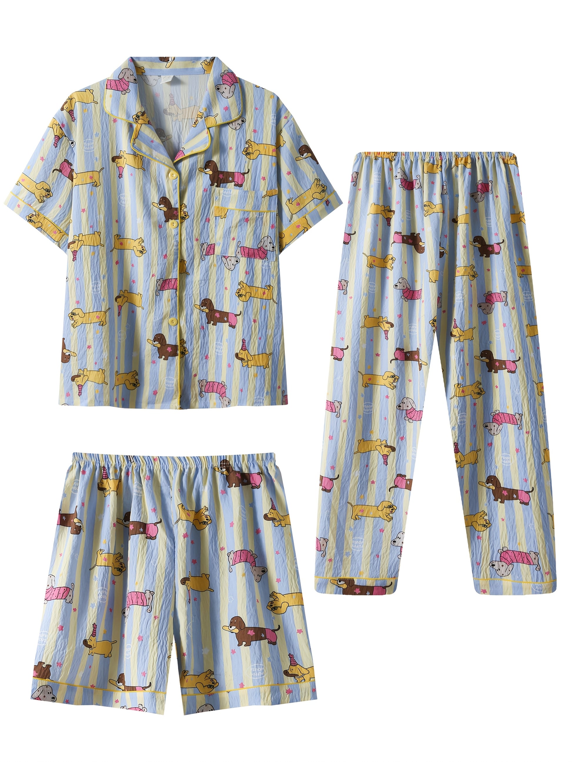 3-in-1 Dachshund Print Pajama Set β Shirt, Shorts & Pants