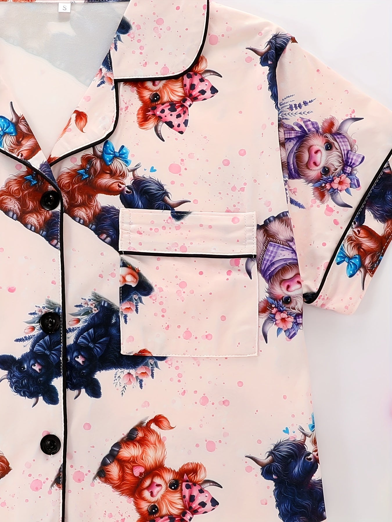 Adorable Cartoon Cow Print Nightwear Set (3-Piece Combo)