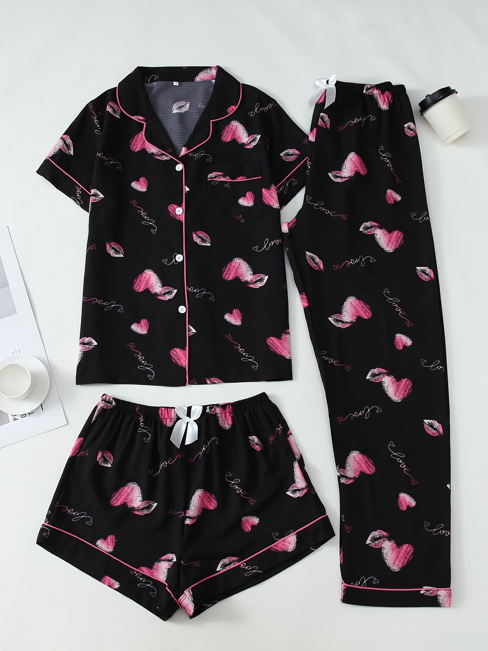 This 3-piece set includes a button-down shirt, elastic shorts, and comfy lounge pants β making it the ideal mix of style, comfort, and romance. Whether youβre planning a cozy movie night, Valentineβs date-at-home, or just want to feel a little extra, this set is made to impress. π